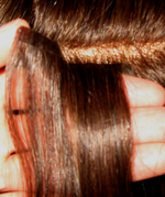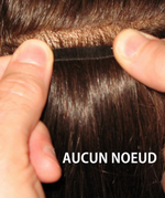 Retirez l'écran fusion bleu à l'intérieur de l'extension EZ Fusion. Placez de façon égale la section de 1.5" (4cm)de largeur des cheveux de la cliente, sur la surface entière du bas (dessous) de l'extension EZ Fusion.